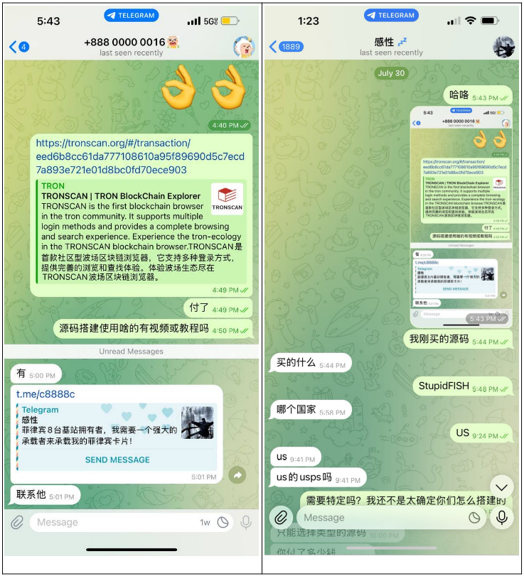 Tive administrators of the Telegram channels associated with stupidFISH were identified. Based on Resecurity's assessment, the kit was developed by a group from China comprising multiple members with varying roles and responsibilities. The group includes many more members, with administrators acting as a "front" to manage payments and service new customers.