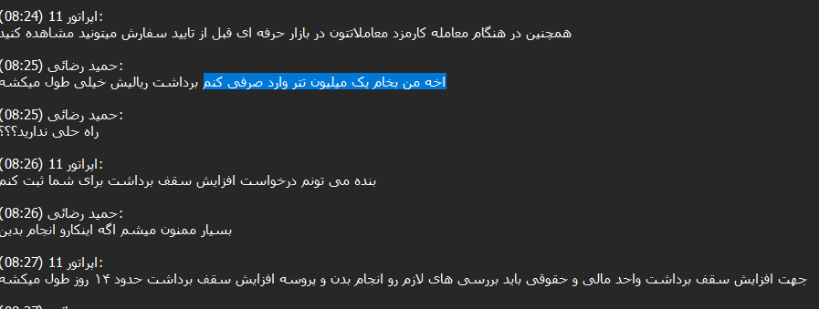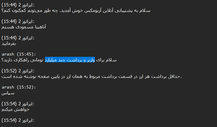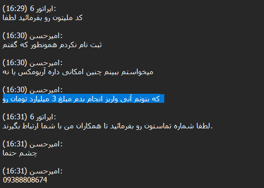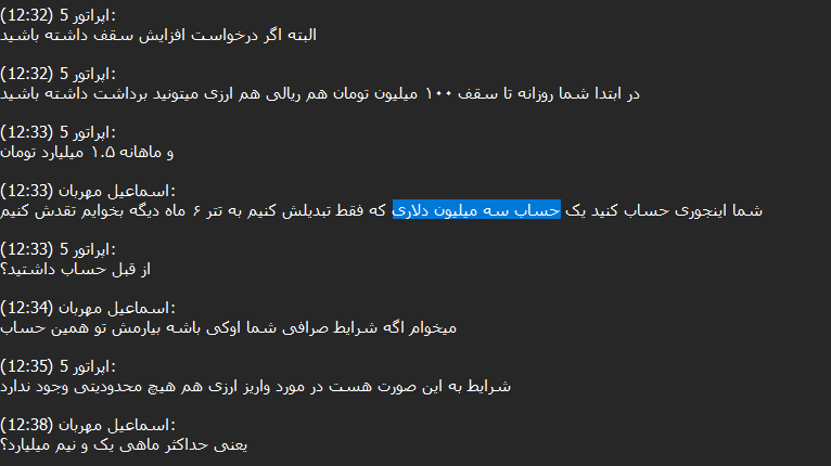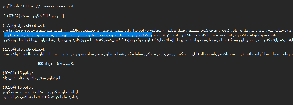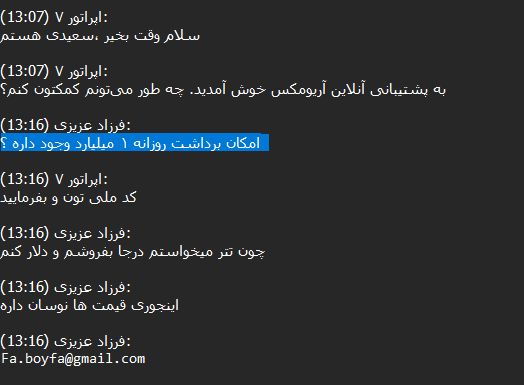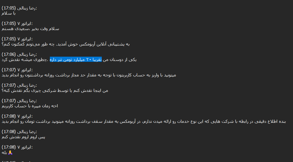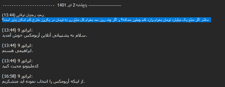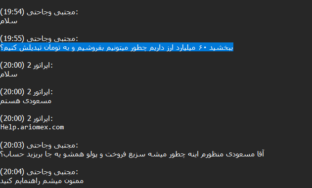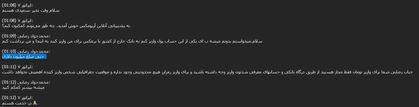 After reviewing more than 14,000 chats between Ariomex users and customer support, we observed that this exchange primarily serves Iranians attempting to preserve their assets, including those seeking to bypass sanctions.