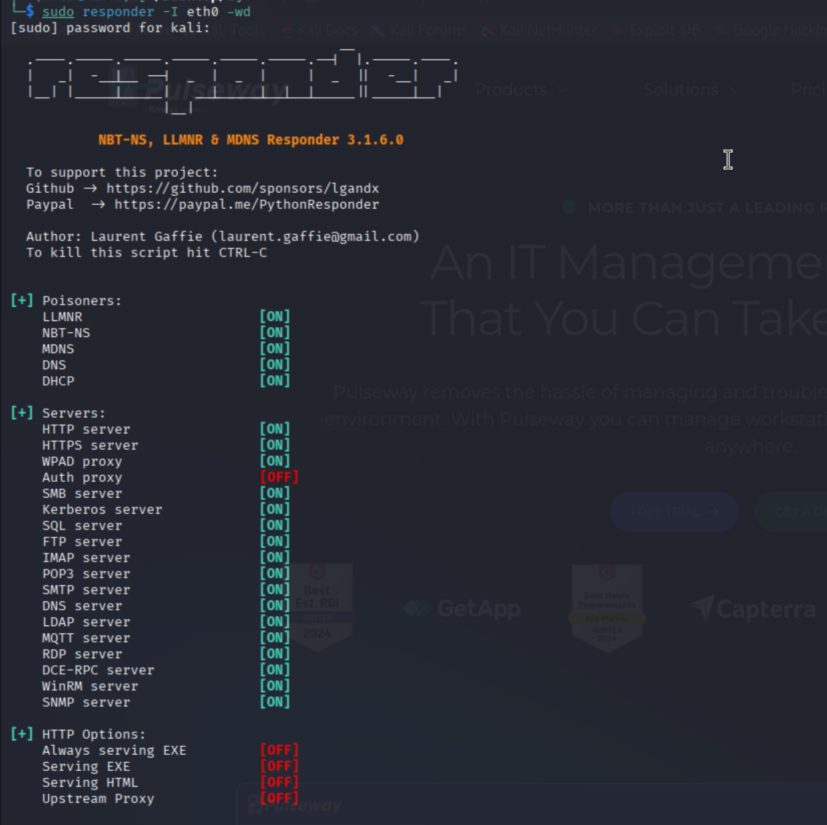 sudo responder -I eth0 -wd