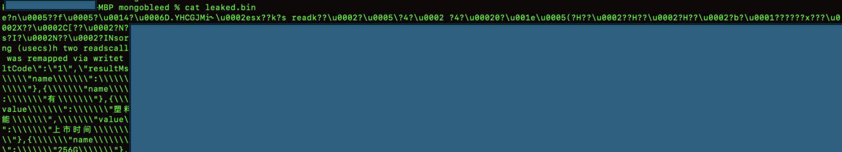 When the client processes this response, it reads memory until null bytes are encountered, effectively exposing arbitrary chunks of the MongoDB server’s heap.