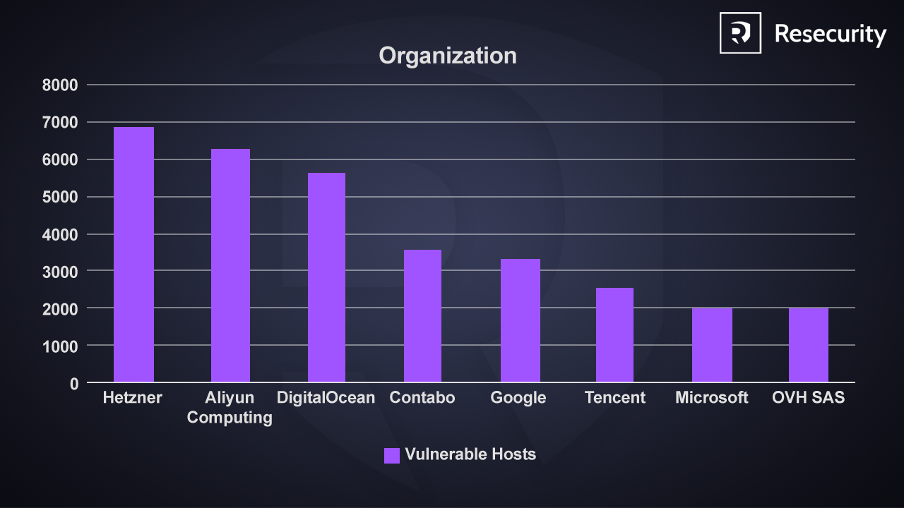 The available telemetry shows that a significant portion of exposed and vulnerable MongoDB instances are hosted on major cloud and infrastructure providers. The highest concentrations were observed on the following providers: