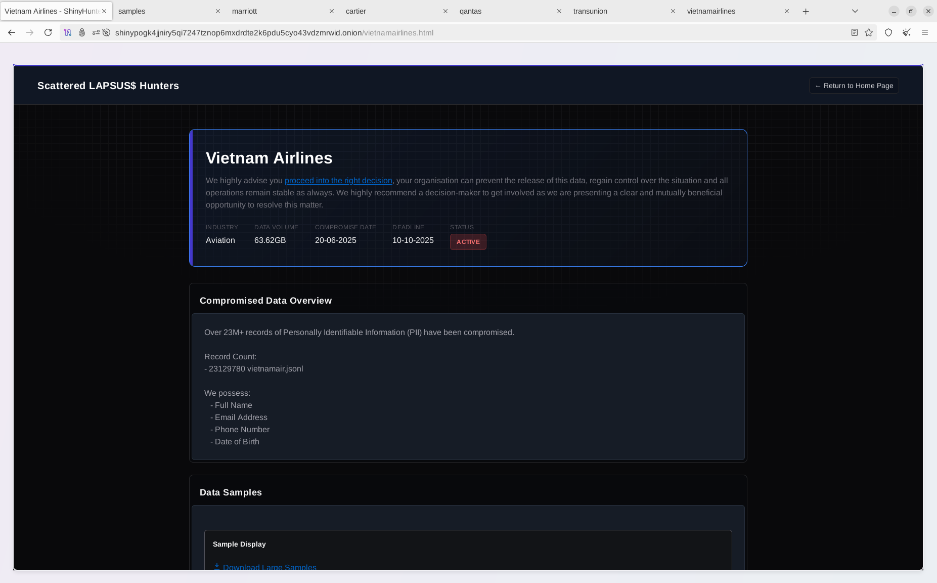 It is not yet clear whether the groups or their members are connected, but in the case of "Scattered LAPSUS$ Hunters," definitive evidence of stolen data has been shared. Interestingly, prior to this announcement, the group claimed to have exfiltrated over 160 million records from the National Credit Information Center (CIC) of Vietnam. Resecurity has provided additional details about that incident in a separate threat intelligence report.