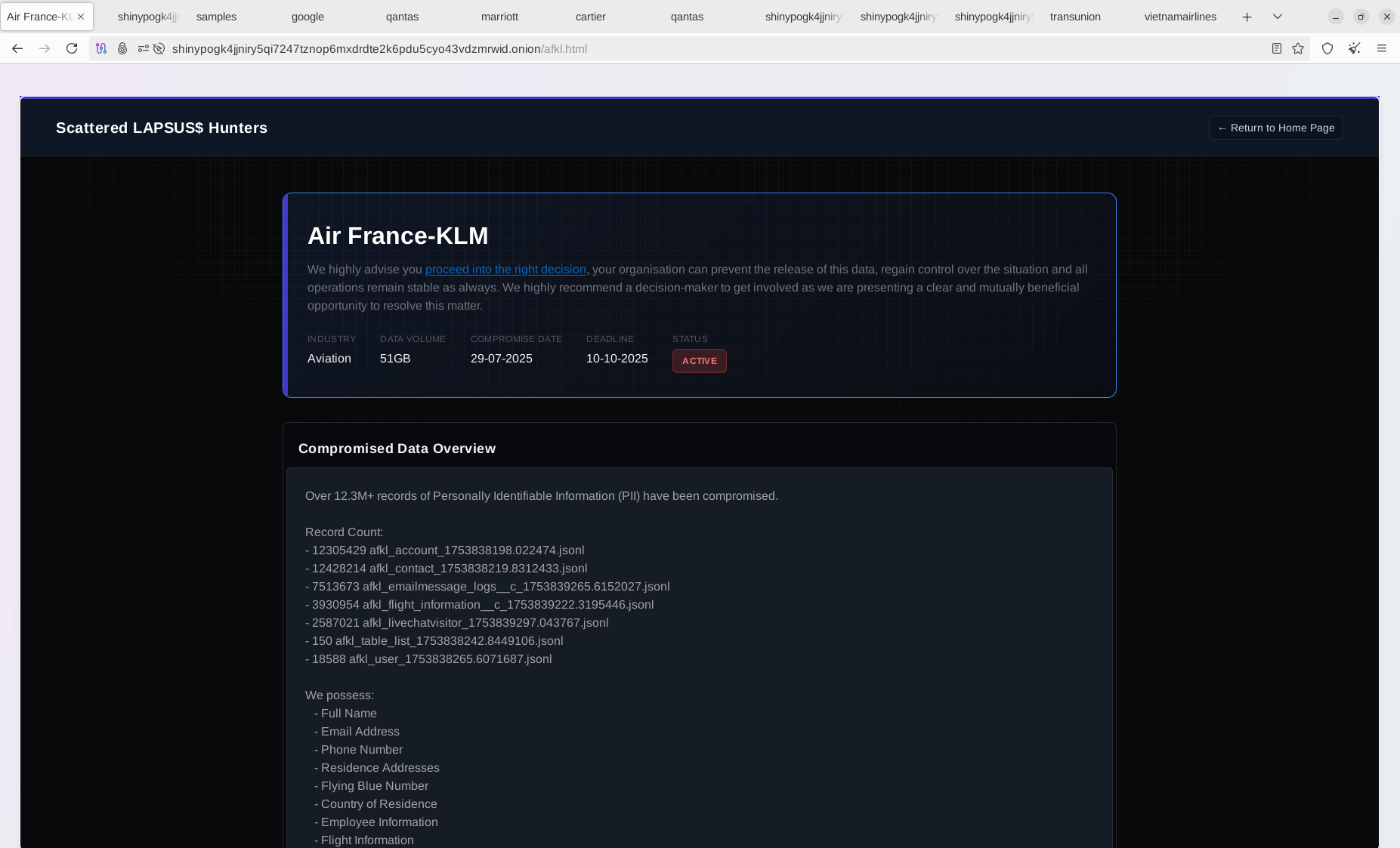 Cybercriminals have shared evidence of successful data breaches involving airlines, including Air France and KLM. The leak of PII data in these incidents could be particularly damaging, especially within the European Union, where data protection regulations such as GDPR impose strict penalties for breaches involving personal information.