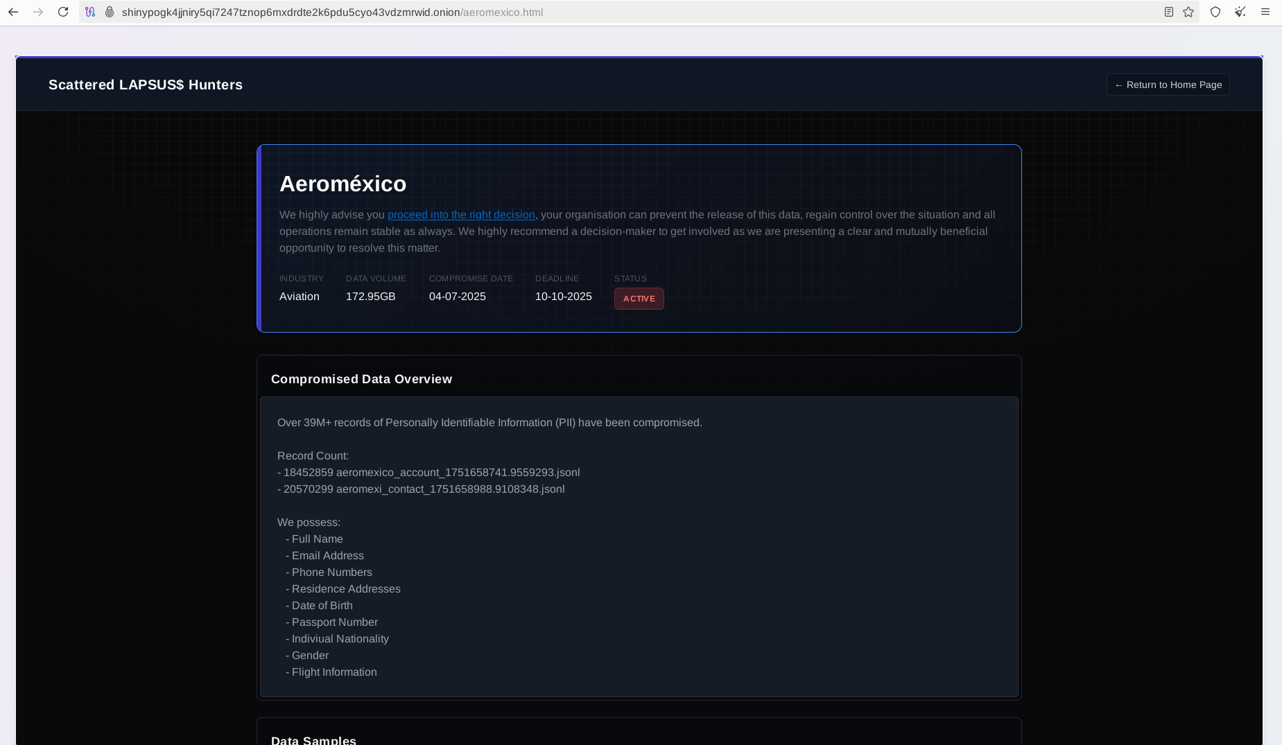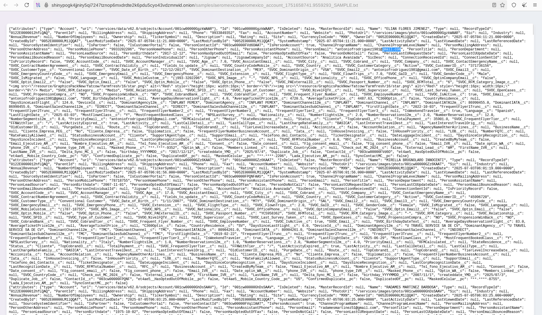 The breach, dated July 4, 2025, was likely related to Salesforce exploitation based on the observed records. The actors claim to have exfiltrated over 39 million records containing PII and have shared a substantial sample: