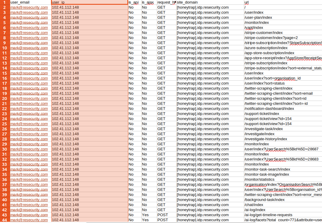 Processing a large dataset of synthetic data led to several OPSEC mistakes, resulting in the identification of the exact servers used by the attacker for automation—where he was using lists of residential IP proxies to spoof the source.